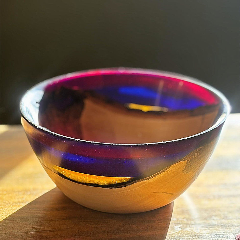 Hand-turned from salvaged Denver wood and infused with luminous resin, each vessel in the Mountain Light Collection captures the way Colorado’s landscapes transform under shifting light. From alpine snowmelt streams to canyon sunsets and aurora skies, these pieces embody the meeting of rugged bark ridges and radiant resin glow. A collection rooted in place, crafted to feel timeless, and designed to bring the spirit of the Rockies into your home.